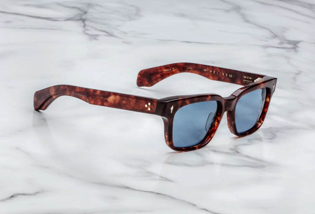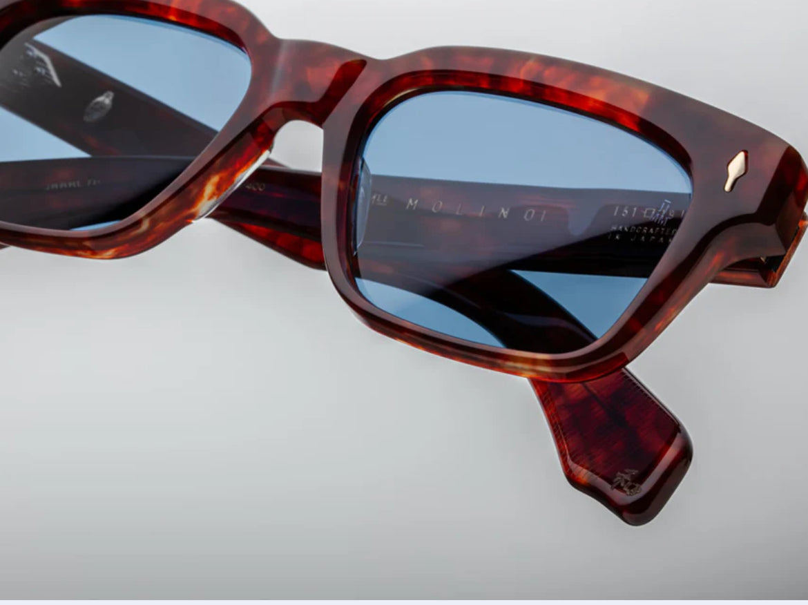 A Jacques Marie Mage icon, the ‘Molino’ are rectangular '60s-inspired spectacles that feature subtle beveling and our signature precious metal embellishments. The shape of rebellious sophistication, these distinctive ‘60s-inspired spectacles are an astute mix of volume and balance, a handcrafted heirloom of impeccable construction and subtle bevel detailing that demonstrates a flair for the sensual and poetic.